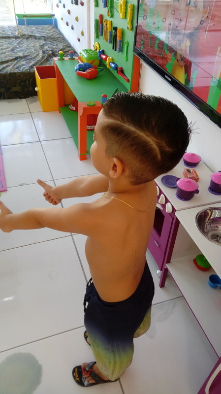 levar os filhos num salão especializado, onde as crianças se sintam em seu
